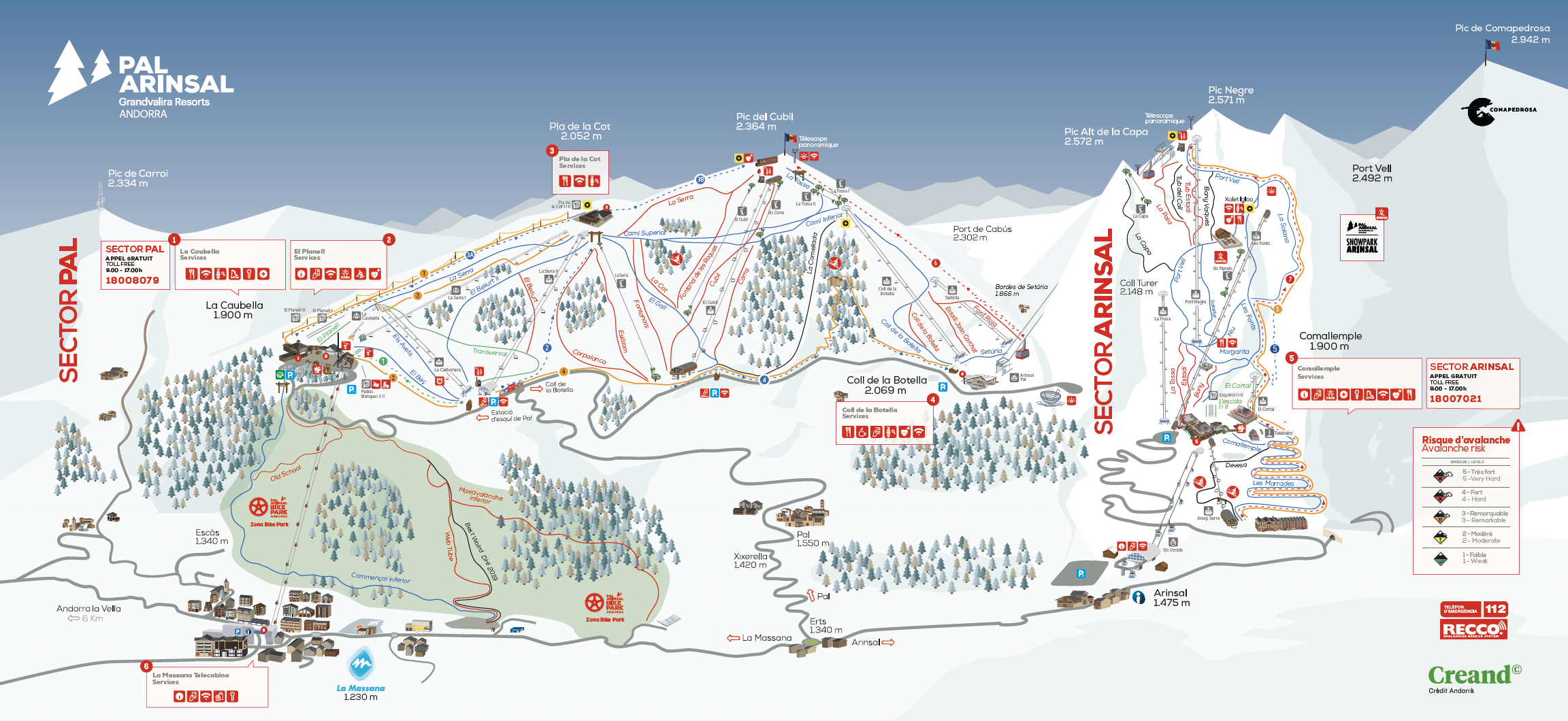 At Pal/Arinsal resort there are 10 different free parking locations which are able to house up to 6600 vehicles. In Arinsal, there is one main car park at the base station, with Pal sector having several different ones dotted around the resort.